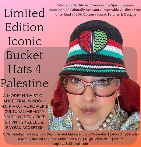 "This was my first time collaborating on the design of a bucket hat. I love the outcome. Working with Glorya was a pleasure. She went the extra distance to crochet a truly unique bucket hat that I keep being complimented on by others. I told her the colors I wanted. She designed a spectacular design that holds symbolic meaning."